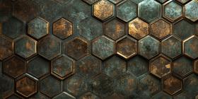 Colorful Hexagonal Tiles: A Playful Mosaic of Vibrant Shapes, Interlocking Patterns in a Geometric Symphony.