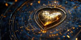 Golden Heart Glyphs: Mystical Symbols and Sparkles Surround a Radiant Heart, a Love Spell in Light.