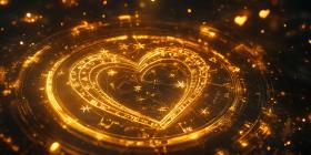 Golden Heart Glyphs: Mystical Symbols and Sparkles Surround a Radiant Heart, a Love Spell in Light.