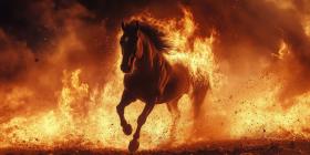 Fire Horse Galloping: A Majestic Stallion Runs Through Blazing Flames, Power and Fury in a Fiery Inferno.
