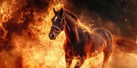 Fire Horse Galloping: A Majestic Stallion Runs Through Blazing Flames, Power and Fury in a Fiery Inferno.