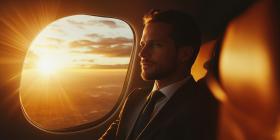 Tranquil Business Sunset Through Airplane Window