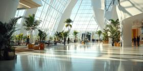 Waiting Area at Airport Terminal, Highlighting Tarmac Views, Flight Information Boards, and Anticipative Travelers
