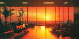 Waiting Area at Airport Terminal, Highlighting Tarmac Views, Flight Information Boards, and Anticipative Travelers