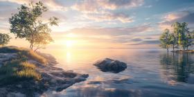 Sunlit Meadow Bloom: Wildflowers and Grass Sway in Gentle Breeze, a Sunny Landscape of Peace and Natural Beauty.