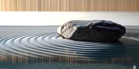 A Serene Garden Where Stone and Blossom Meet in a Dance of Peaceful Harmony