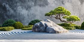 A Serene Garden Where Stone and Blossom Meet in a Dance of Peaceful Harmony