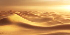 Golden Sands Stretch Towards a Horizon Bathed in the Warm Glow of a Desert Sunrise