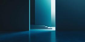 A Serene Space Where Shadows Dance in Harmony with Soft Blue Light and Gentle Reflections