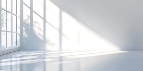 Sunlight Streams into an Empty White Room Creating a Minimalist Study of Light and Shadow