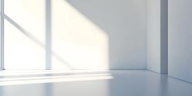 Sunlight Creates Abstract Patterns on a Minimalist White Stage with a Small Plant