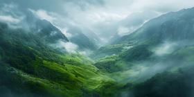 Misty Mountain Landscape: A Breathtaking View of Lush Green Hill
