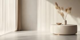 Soft Light Illuminates Pampas Grass in a Vase on a Round Table in a Minimalist Room