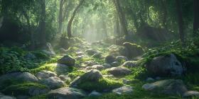 Enchanted Forest Stream: Lush Green Nature Background Image