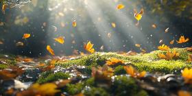 Falling Autumn Leaves: Sunbeams in Forest