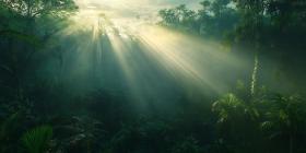 Sunbeams Filtering Through Lush Green Forest Canopy: A Nature Ph