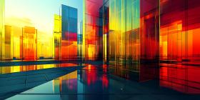 Vibrant Cityscape Abstract Art: Colorful Buildings Reflection