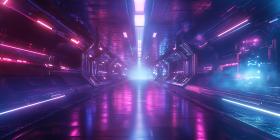 Neon Lights Tunnel Background: Pink and Blue Sci-Fi Wallpaper