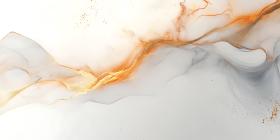 Wisps of Orange and Grey Ink Dance Together on White with Glimmers of Gold