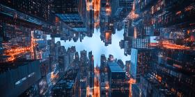 Abstract Geometric Shapes in Vibrant Red and Blue Create a Dynamic and Futuristic Perspective