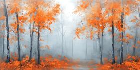 A Tranquil Stream Flows Through an Autumn Forest Adorned with Vibrant Orange Leaves and Gentle Mist