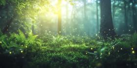 Enchanted Forest: Magical Sunlight, Lush Greenery, Nature Backgr