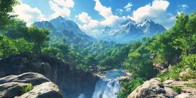 Stunning Mountain Waterfall Landscape Lush Greenery Breathtakin