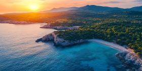tropical beach sunset aerial view ocean cove palm trees paradise beach sea coastline landscape nature water travel vacation holiday summer sun sky golden hour tropical exotic idyllic serene calm relaxing cliff rocks sand waves blue water turquoise vista scenic viewpoint panorama photography photo image beautiful amazing stunningSimilar Photos