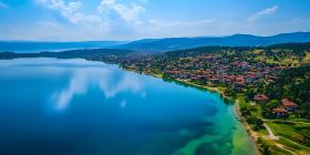 aerial view lakeside town blue lake green landscape waterfront property scenic view summer landscape travel destination tourism vacation nature photography drone photography peaceful scene idyllic setting coastal town lake community residential area bird's eye view overhead shot tranquil water clear sky cloud formations horizon hills trees foliage houses buildings shoreline coastline panorama vista scenic beautiful pretty attractive picturesque charming relaxing sereneSimilar Photos