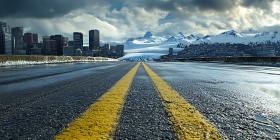 asphalt road cityscape urban landscape wet rain cloudy sky dramatic dark yellow lines center lines buildings hazy distant moody atmosphere grey stormy weather travel journey perspective path way horizon view street highway route destination city concrete texture background panorama scenic photo pictureSimilar Photos