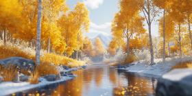 autumn winter river forest trees aspen golden snow sunlight nature landscape scenic peaceful tranquil magical beautiful serene wonderland cold frozen reflection water woods yellow white mountain season art artwork illustration digital art painting photography scene view background texture environment winter wonderland golden autumnSimilar Photos