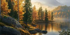 autumn lake forest trees landscape photography nature scenic golden sunlight mist serene tranquil calm peaceful vibrant colors fall foliage woods water reflection sunrise sunset artwork art picture image visual illustration scenic view natural beauty environmental ecosystem outdoors wild woodland coniferous deciduous evergreen rock stone mountain hillSimilar Photos