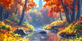 Autumn Stream Vibrant Fall Foliage Landscape Painting