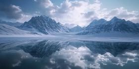 Stunning Winter Landscape Frozen Mountains and Reflective Lake