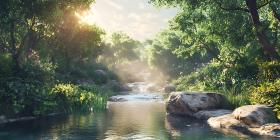 river forest nature sunlight trees water rocks landscape scenic tranquil peaceful serene green lush foliage environment calm outdoor photography view background scene summer sunshine path stream woods botanical ecology natural beauty vibrant golden hour fresh clean refreshing peaceful place relaxing escape journey travel adventureSimilar Photos