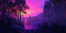 purple sunset forest trees landscape fantasy digital art background wallpaper pink mountains stream river twilight evening nature scenic peaceful serene magical dreamlike ethereal vibrant colors illustration artwork artistic creative beautiful amazing wonderland enchanted mystery purple sky pink sunset dark trees mountain range hazy depth composition sceneSimilar Photos