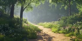 forest path sunlight trees leaves green nature pathway trail woods walk peaceful serene tranquil calm scenic landscape outdoor environment countryside rural summer morning light shadow foliage vegetation dirt road hiking walking journey travel escape relaxation meditation nature photography beauty wonder exploration adventure peaceful scene natural beauty scenic viewSimilar Photos