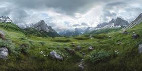 alpine meadow mountain landscape panoramic view mountain range peaks cloudy sky dramatic sky serene wilderness nature photography landscape photography scenic view mountain scenery alpine scenery green meadow rocks hills clouds mountains valley flora vegetation grassland wildflowers outdoor travel adventure scenic beautiful vista panorama viewpoint perspective horizon environment ecosystem geology geography natural beauty untouched nature awe-inspiring breathtakingSimilar Photos
