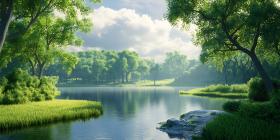 Serene River Landscape Picturesque Nature Scene with Lush Greene