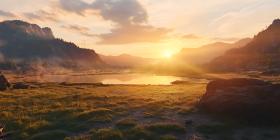 sunset landscape mountains lake golden hour nature panorama scenic view serene peaceful tranquil calm golden light sun rays hills field grassland horizon sky clouds evening twilight natural beauty outdoors travel adventure exploration destination scenic view beautiful scenery breathtaking view photographic photography imagery picture image vista sceneSimilar Photos