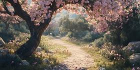 Enchanted Path Blossoming Spring Landscape
