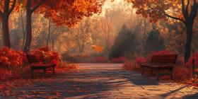 Autumn Park Scenic Pathway Vibrant Fall Foliage Tranquil Bench S