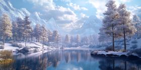 Winter Wonderland SnowCovered Trees Frozen Lake Scenic Landscape