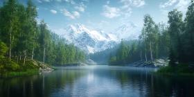 lake mountain nature landscape scenic river trees forest water reflection sky clouds birds green blue peaceful serene tranquil calm idyllic environment wildlife view vista panorama background texture scenic view natural beauty mountain lake forest lake birds flying mountain range summer daytime outdoor photography digital art artwork illustration graphicsSimilar Photos