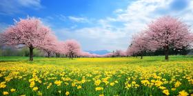 spring blossom cherry blossom pink flowers yellow flowers field flowers landscape nature scenery springtime beautiful scenic vibrant colorful peaceful serene tranquil idyllic countryside meadow bloom blooming trees sky blue sky clouds sun sunshine bright fresh floral plant botanical panorama vista view background wallpaper desktop seasonal spring season pretty amazingSimilar Photos