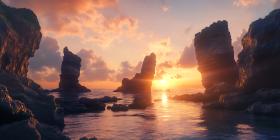 Sunset Seascape Dramatic Rock Formations at Golden Hour