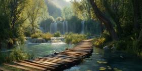 waterfall jungle bridge tropical forest nature landscape scenic river water trees green leaves path travel adventure peaceful serene calm tranquil lush vibrant sunlight wood rustic paradise escape beauty scenic view natural beauty environment ecosystem flora fauna photography artwork digital art illustration background texture amazing wonderful breathtakingSimilar Photos