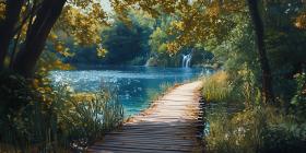 river path trail nature landscape photography peaceful tranquil serene calm green foliage leaves trees sunlight shadows water reflection blue yellow green leaves pathway riverbank woodland forest natural environment scenery outdoor summer scene view background picturesque travel adventure exploration calm water sunlit dappled well-wornSimilar Photos