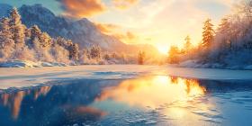 Majestic Winter Sunset Breathtaking Frozen River Landscape
