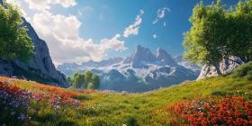 mountain meadow alpine landscape scenic view mountain range snow capped peaks wildflowers meadow green grass trees nature landscape scenery outdoors summer sun sky clouds flora vegetation beautiful idyllic peaceful tranquil serene vista panorama bright colorful vibrant hills valley environment ecosystem natural beauty mountain scenery countryside rural wildlife habitat unspoiled nature breathtaking scenic amazingSimilar Photos